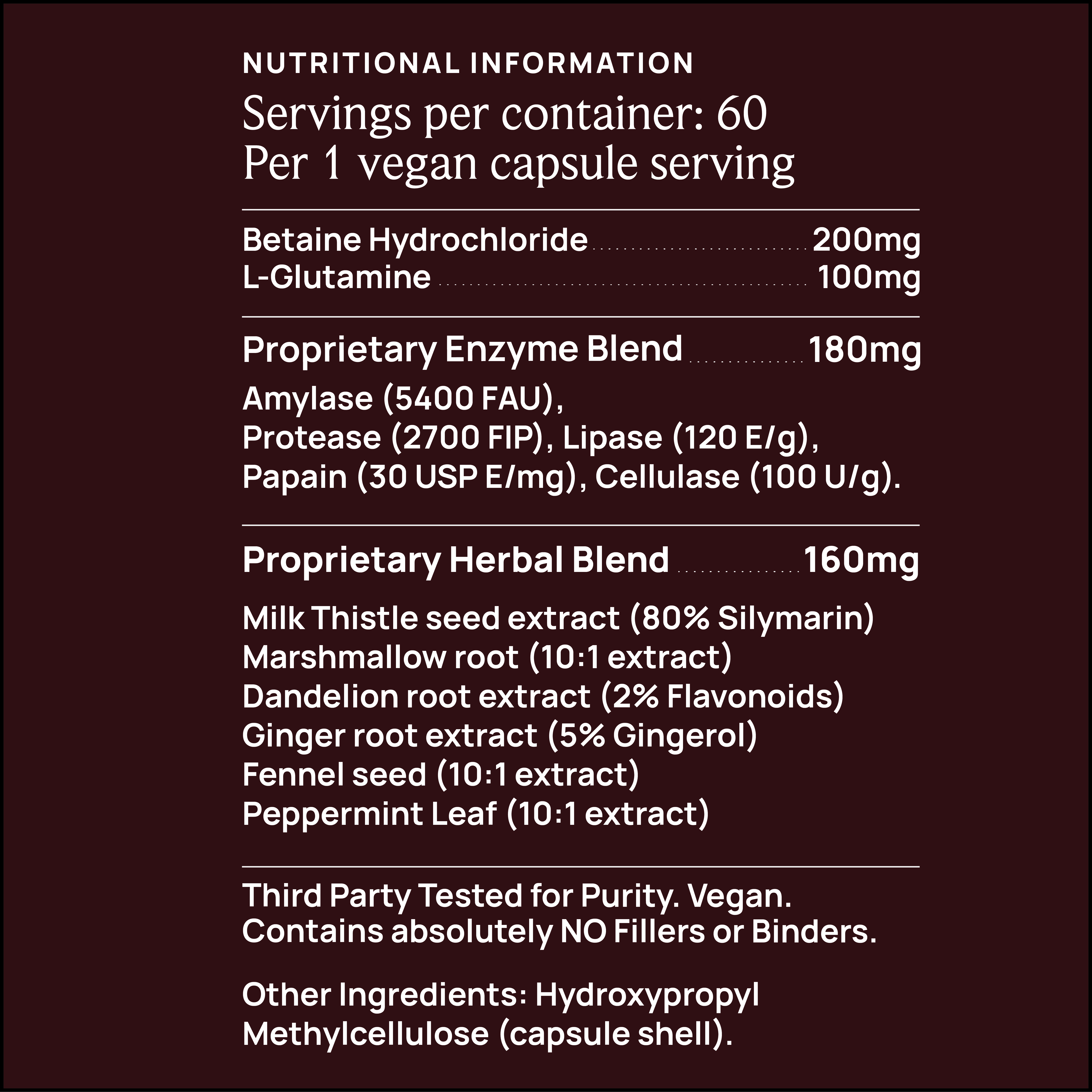 This combination of nutrients and herbs helps support normal digestive function and contributes to balanced digestive activity.